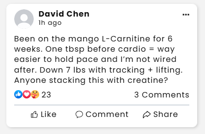 One tablespoon of our stimulant-free Liquid L-Carnitine before workouts to helps the body use fat for energy and support recovery. 3 months later: a tighter waist, clearer muscle lines, and cardio that feels easier.